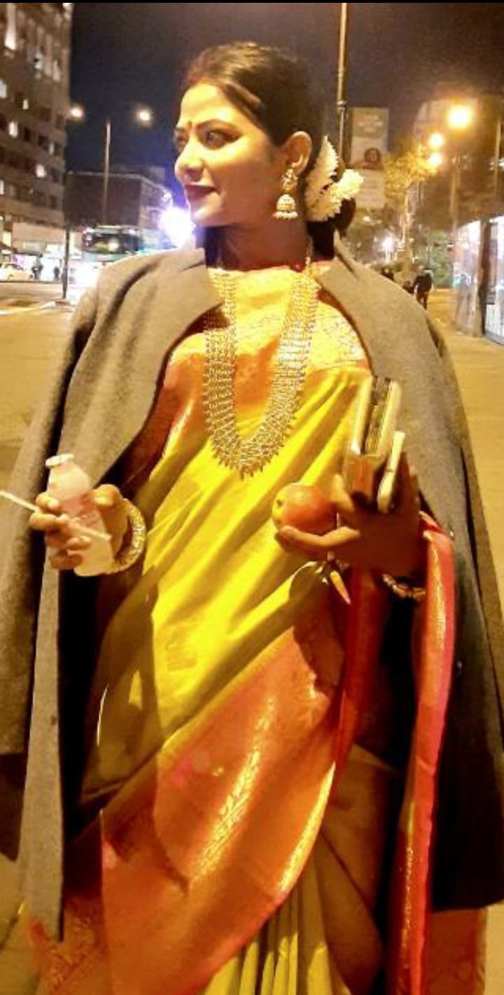 তাই পরদিন সন্ধ্যায় আমি চুলে খোঁপা করে তাতে ফুল লাগিয়ে, পাটভাঙা বাসন্তী