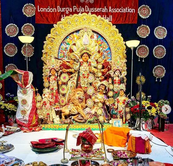 পরিবৃত নর্থ লন্ডনের দূর্গা পূজার জায়গা। এবং মেট্রো স্টেশনের সামনে