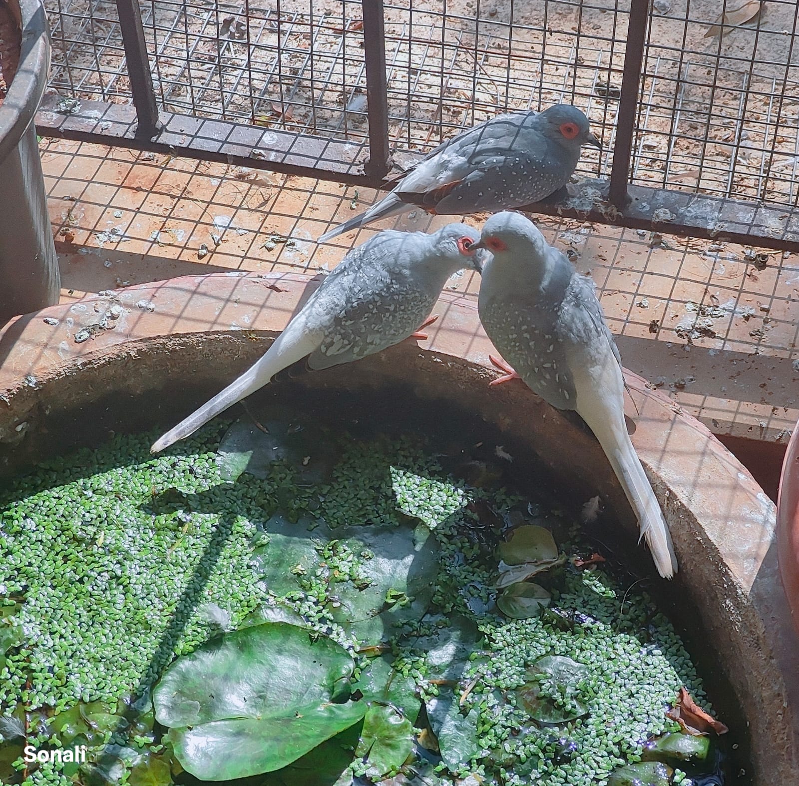 সাদা একজোড়া কাকাতুয়া। ওদের নাম রেখেছি ফ্রস্ট আর স্নো। ওদেরকে দেখে
