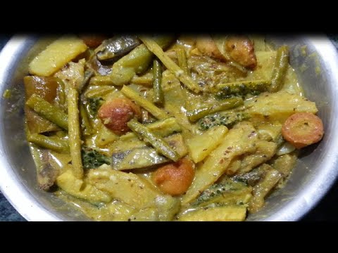 বেগুন, কুমড়ো, কাঁচকলা, মোচা ইত্যাদি সহযোগে আর গুঁড়ো বা বাটা মশলা